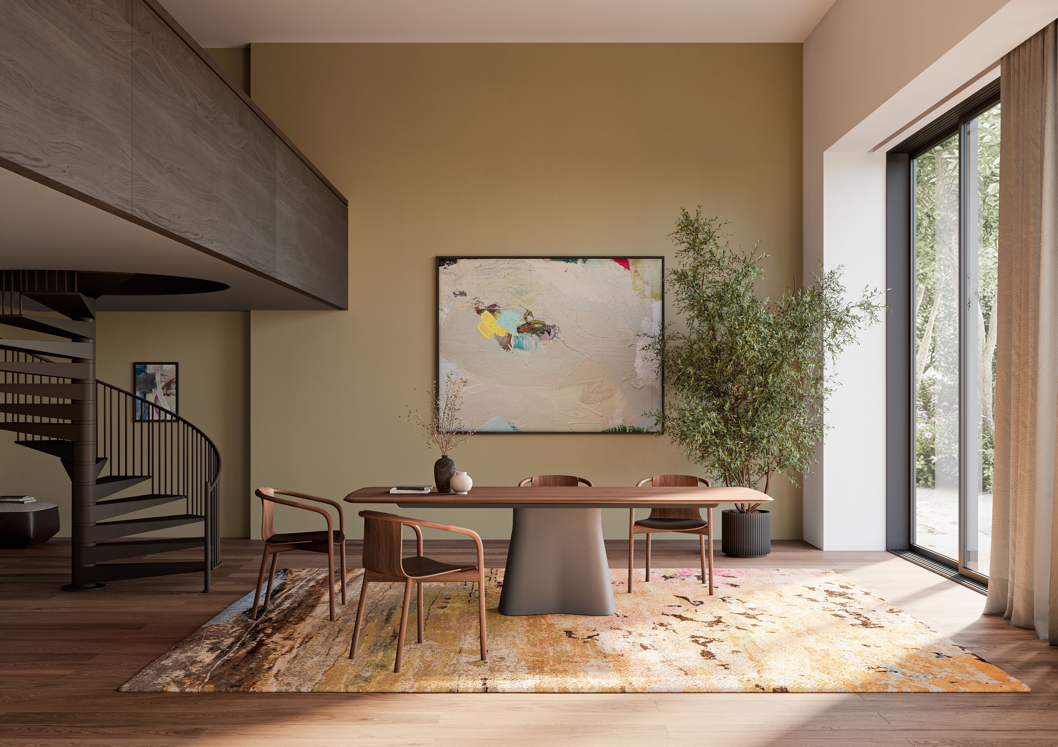 The chair is available in ash, oak, and nutwood. As a company, we are certified according to the FSC® standard. All Osuu wood variants come from sustainable forestry. Materials for the Osuu Chair are currently sourced from the Black Forest. In nutwood, it is a rarity, as the selection and processing of this material require special skills. Only a few manufacturers worldwide can bend solid nutwood. FSC license number: FSC-C168879.