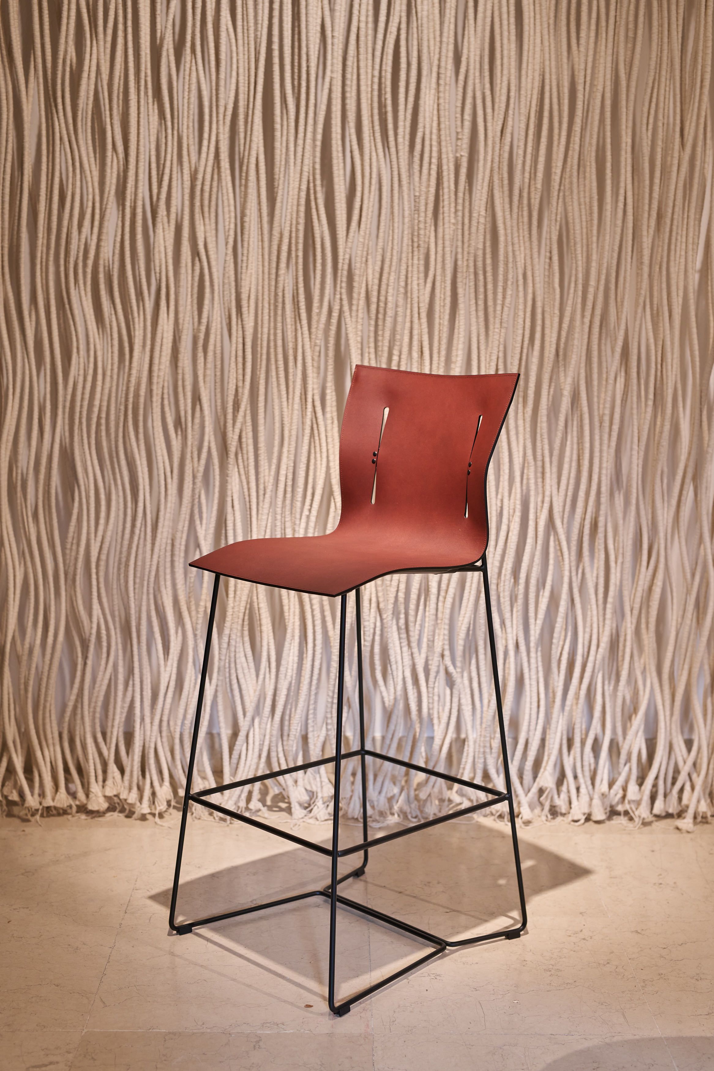 Der Cuoio Barstuhl ist die konsequente Erweiterung des Cuoio Programms. Reduziert in Form und Materialien: Stahl sorgt für die Stabilität, Leder berührt den Sitzenden. Minimales Design für entspanntes Sitzen an der Theke.